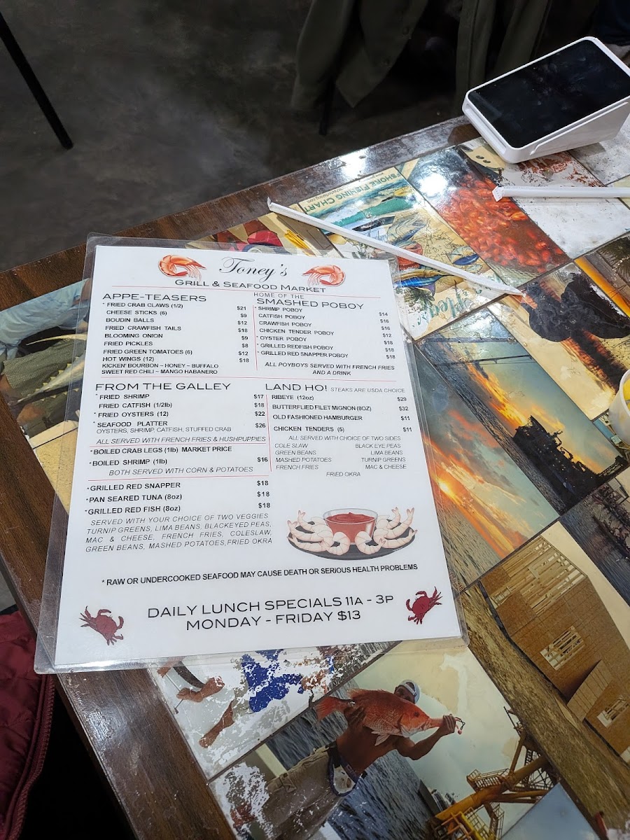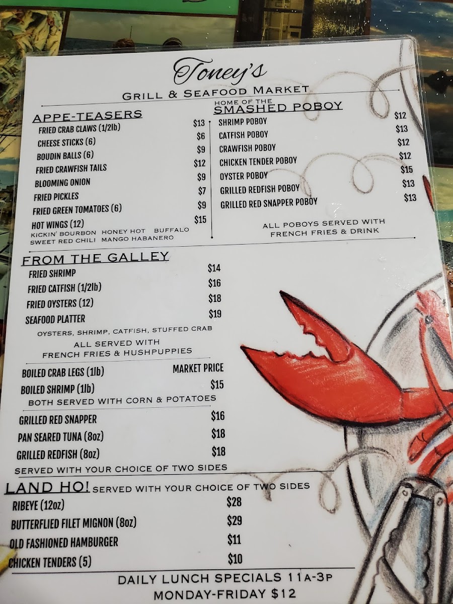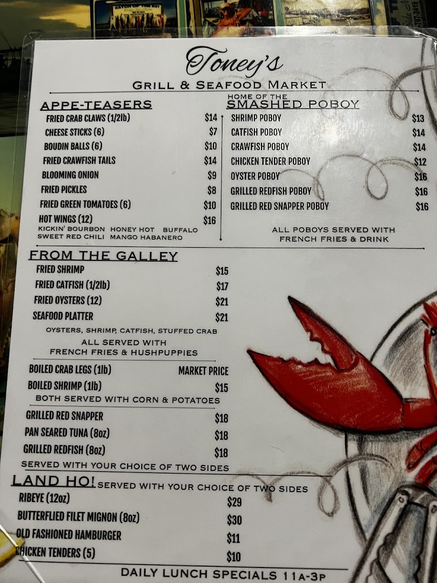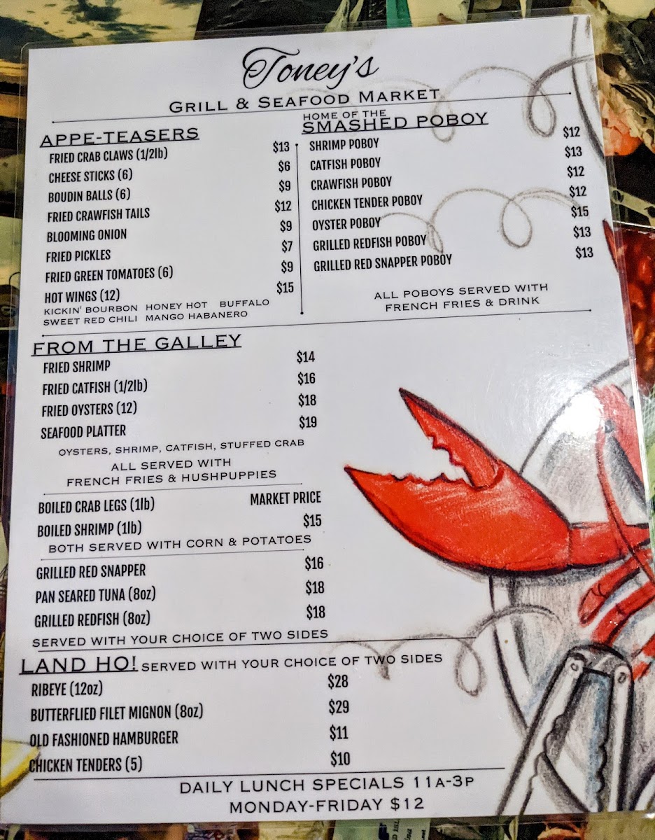 Toney's Grill and Seafood Market Menu