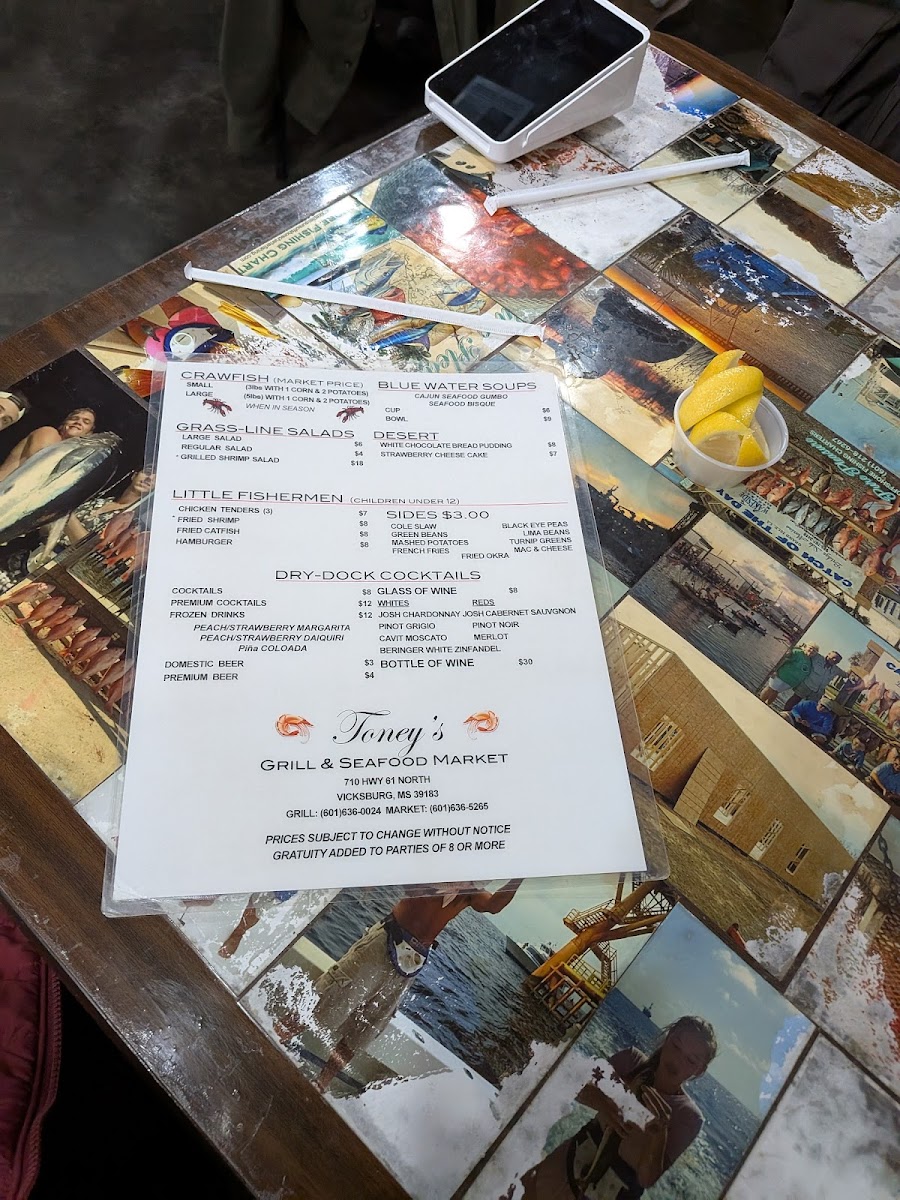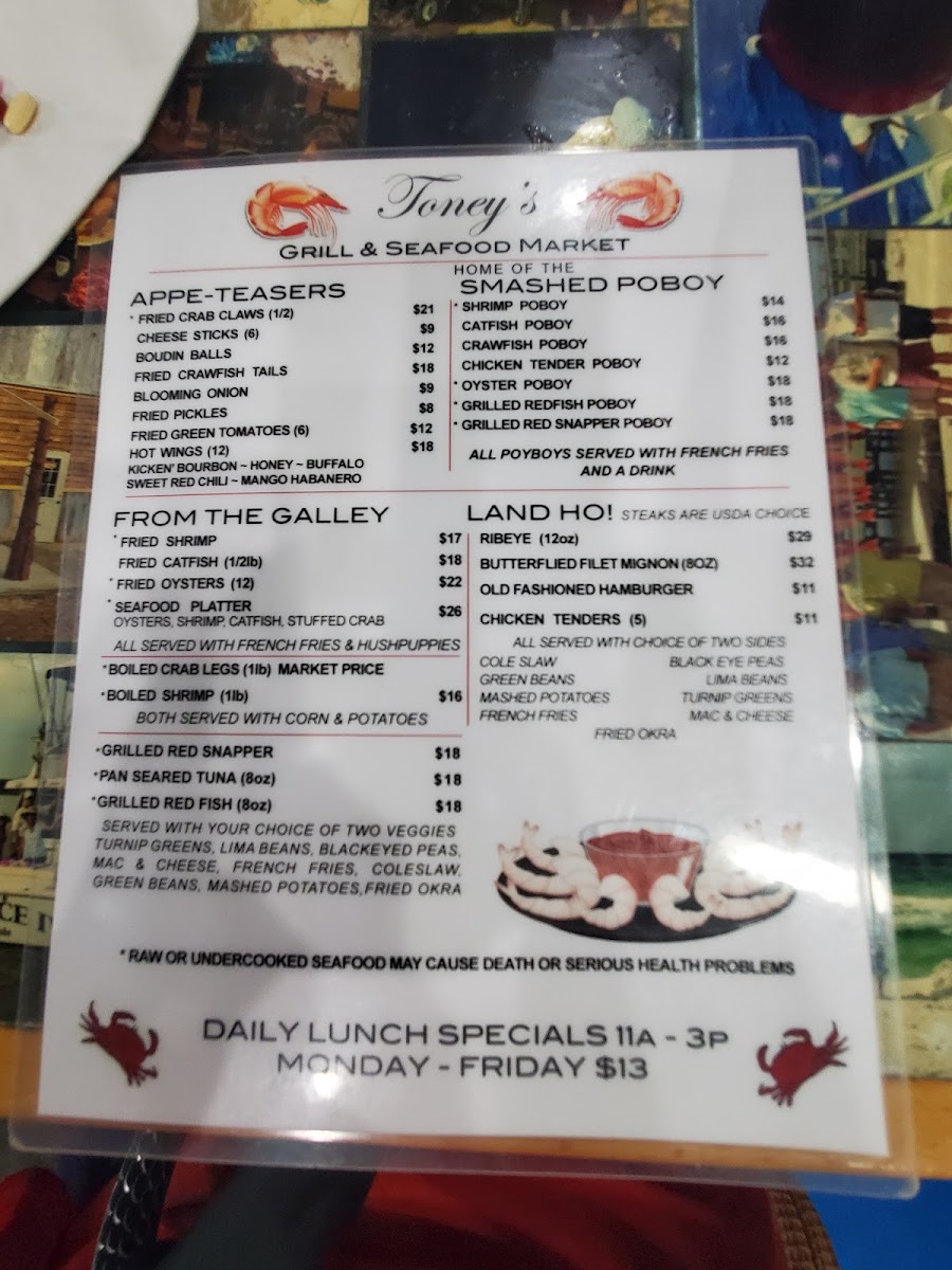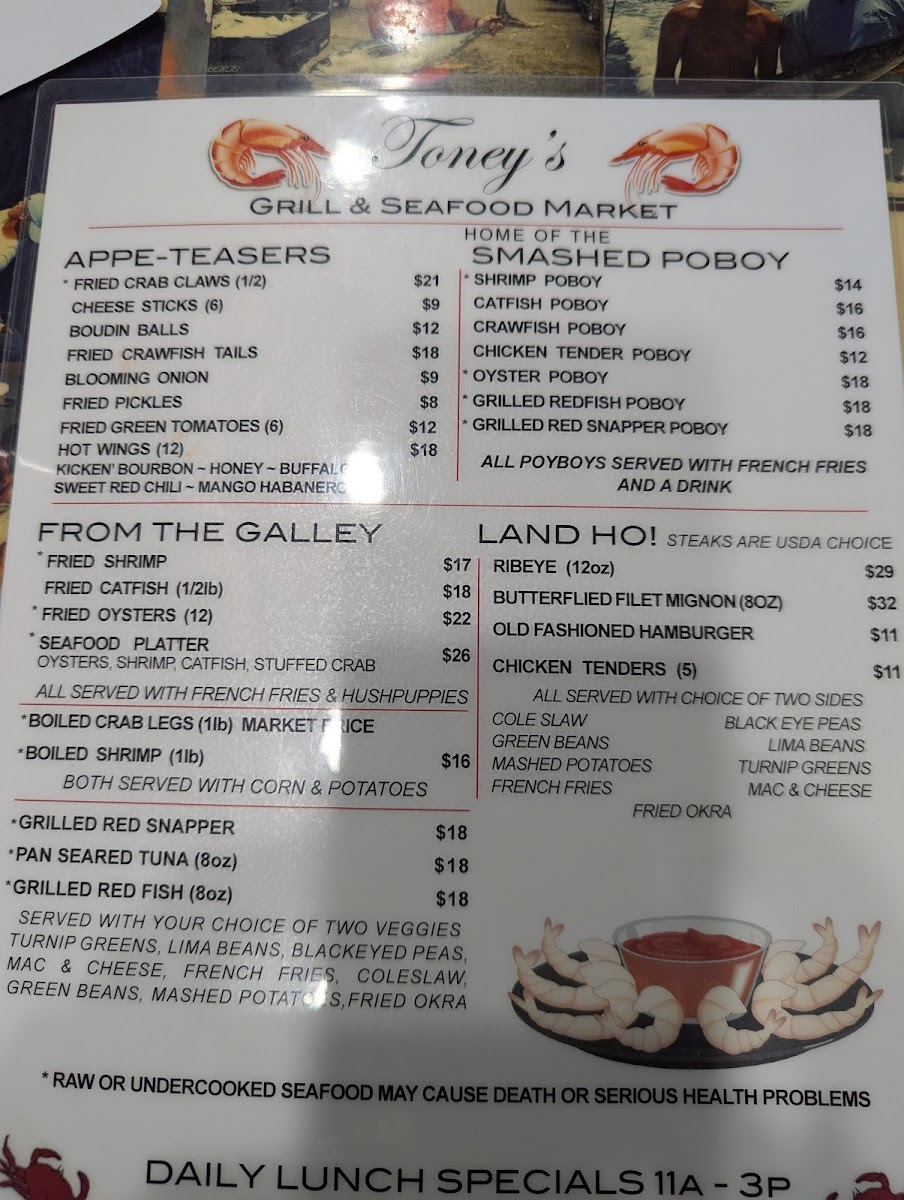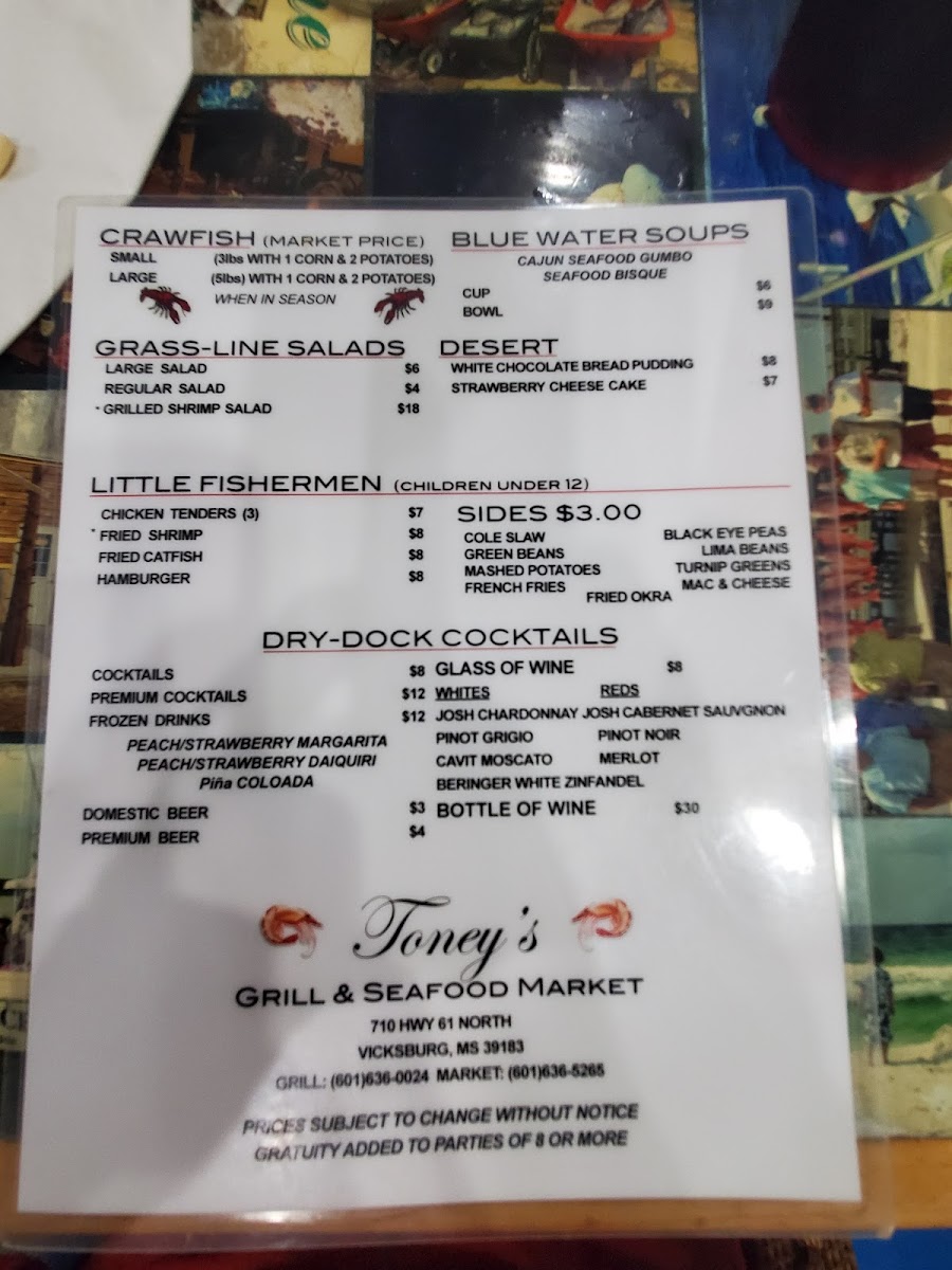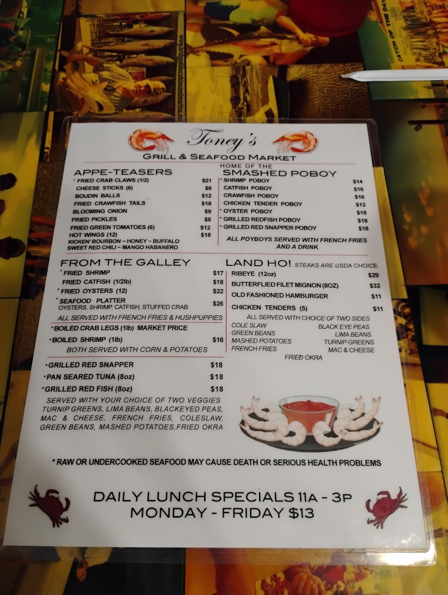 Toney's Grill and Seafood Market Menu